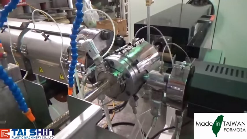 one “L” shape of joint connecting with the extruder will change the traditional lay-out and save much floor space. The inside of joint is coated with a special lubricating layer. PVC material will not remain and burn down.